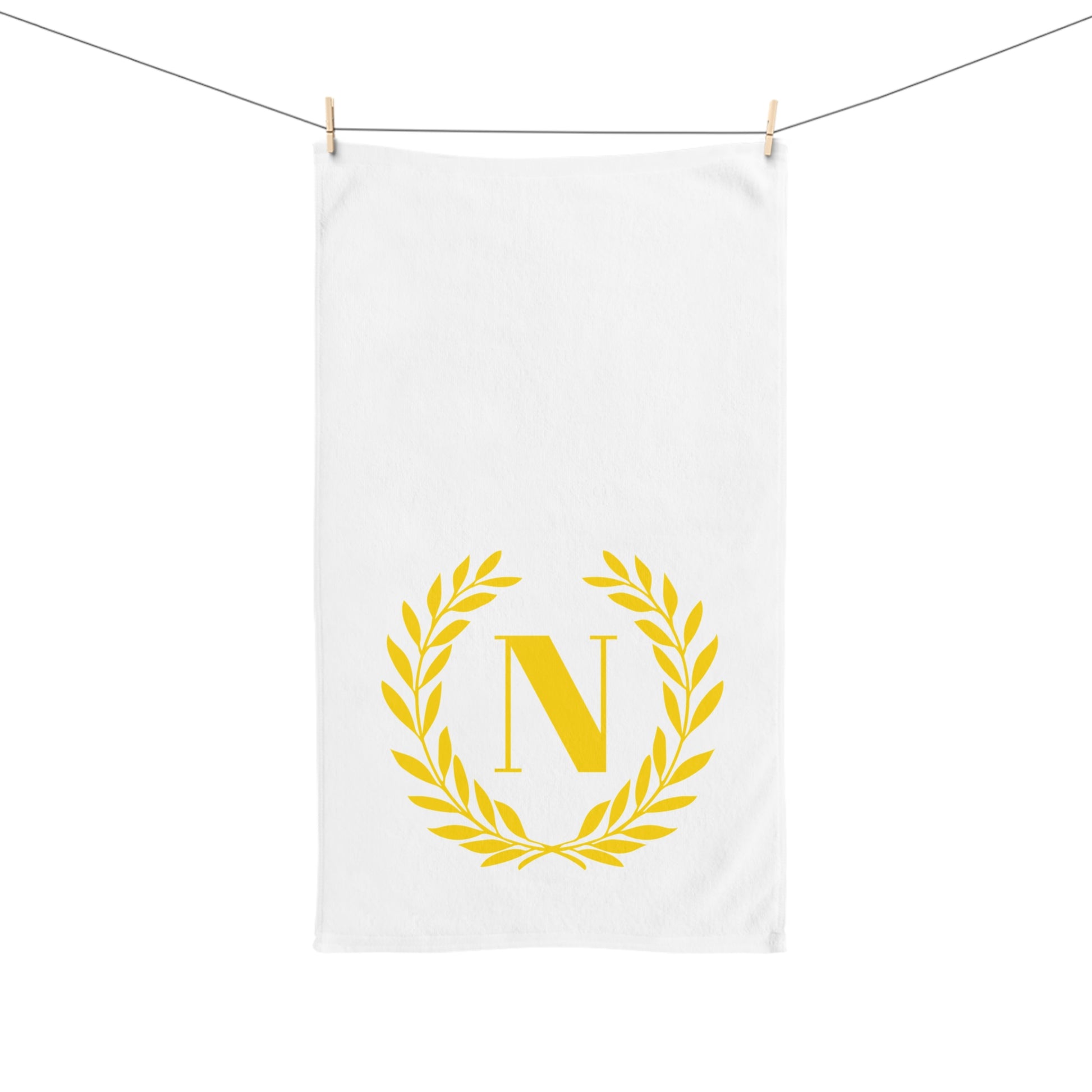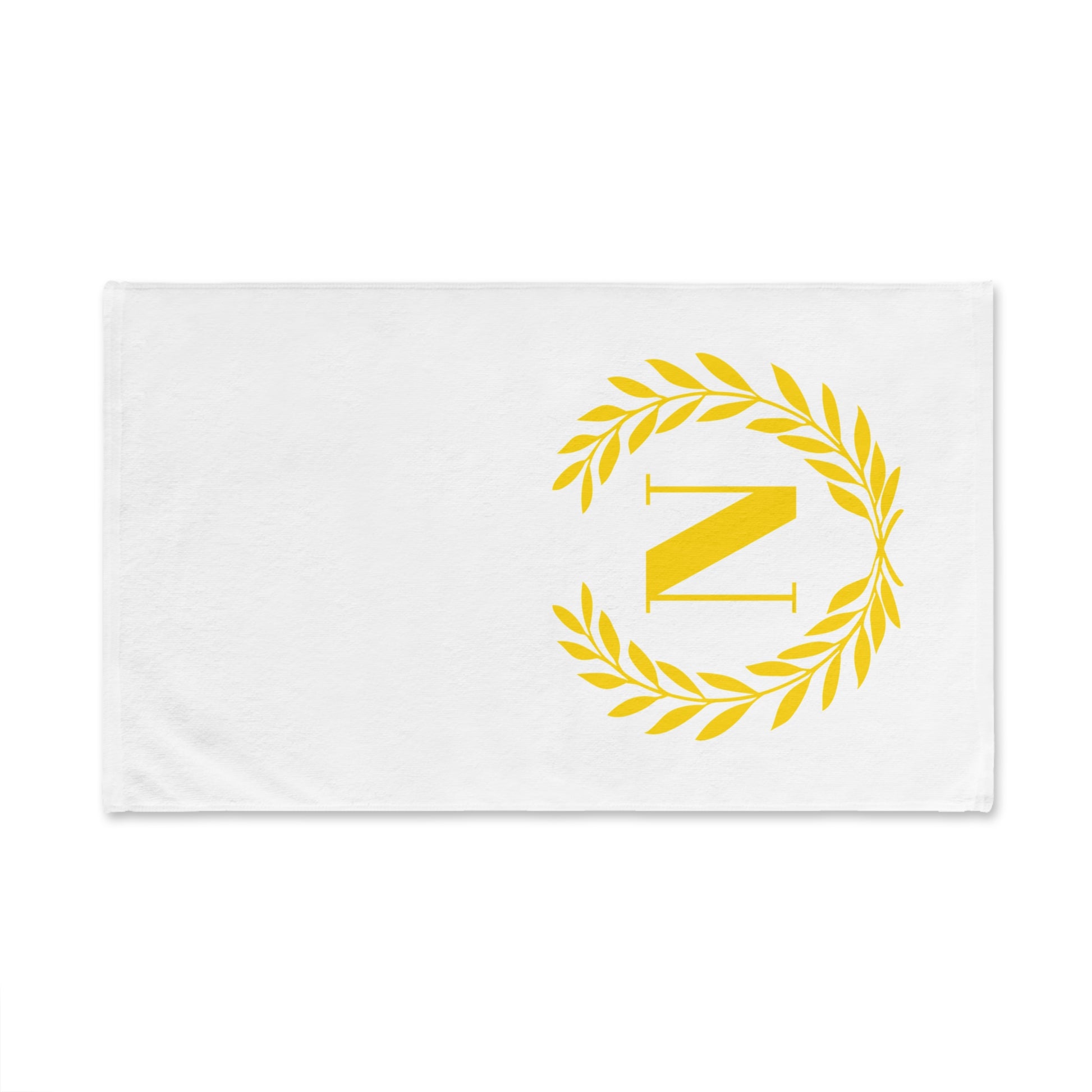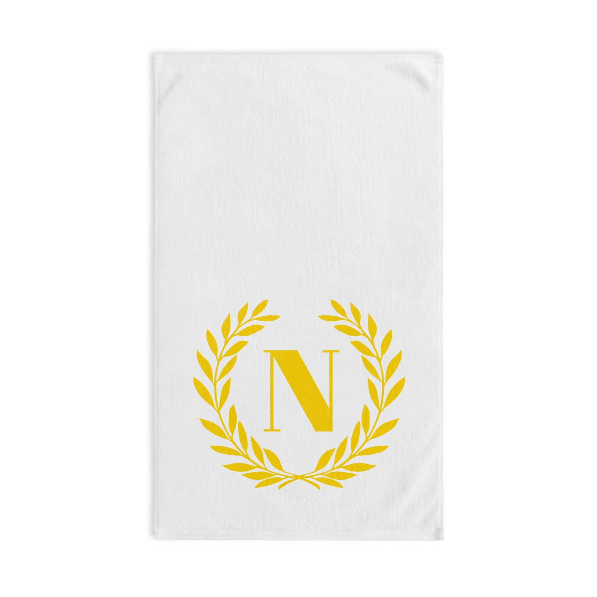 Elegant letter "N" Gold Laurel Monogram White Hand Towel