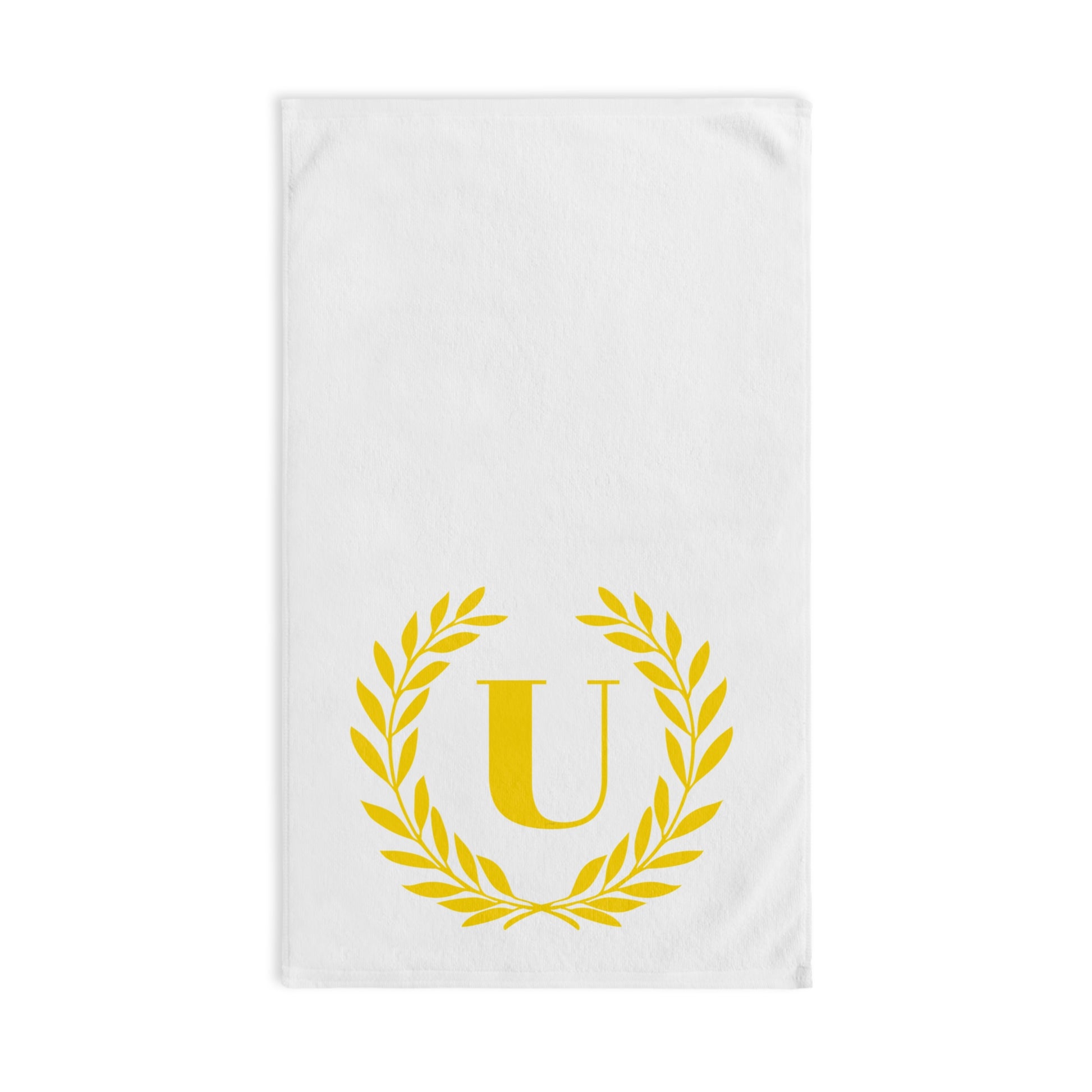 Elegant letter "U" Gold Laurel Monogram White Hand Towel